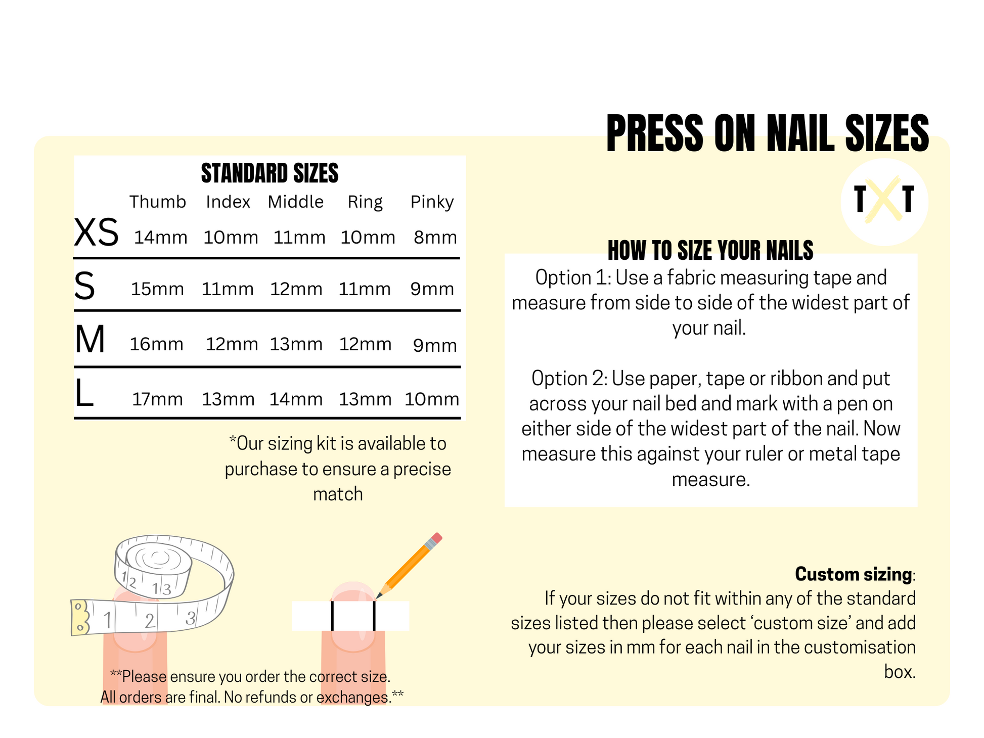 Here at Tortie x Tux we prioritise customer satisfaction, so feel free to reach out to us with any enquiries. We are here to ensure you love your TxT nails!