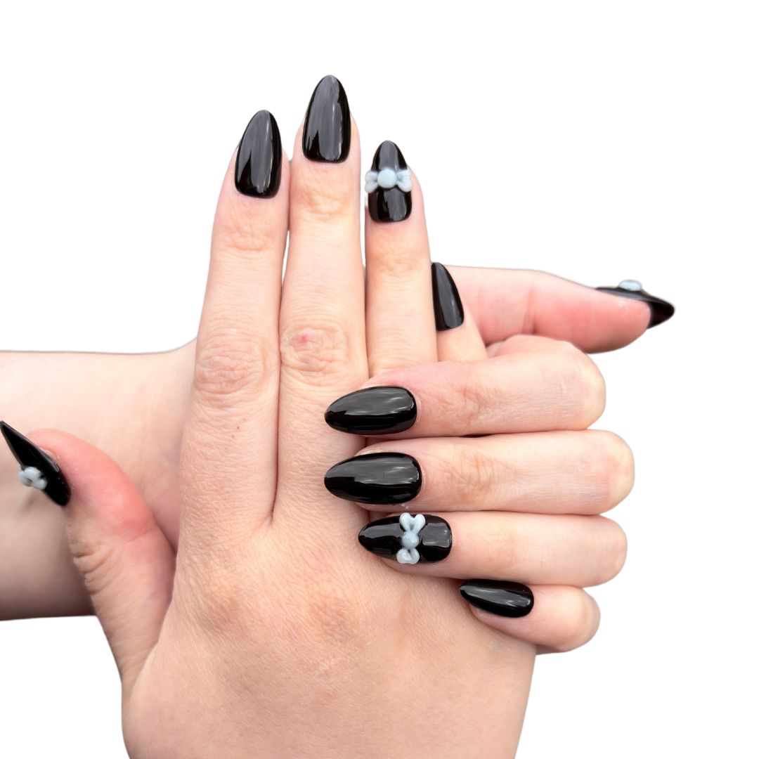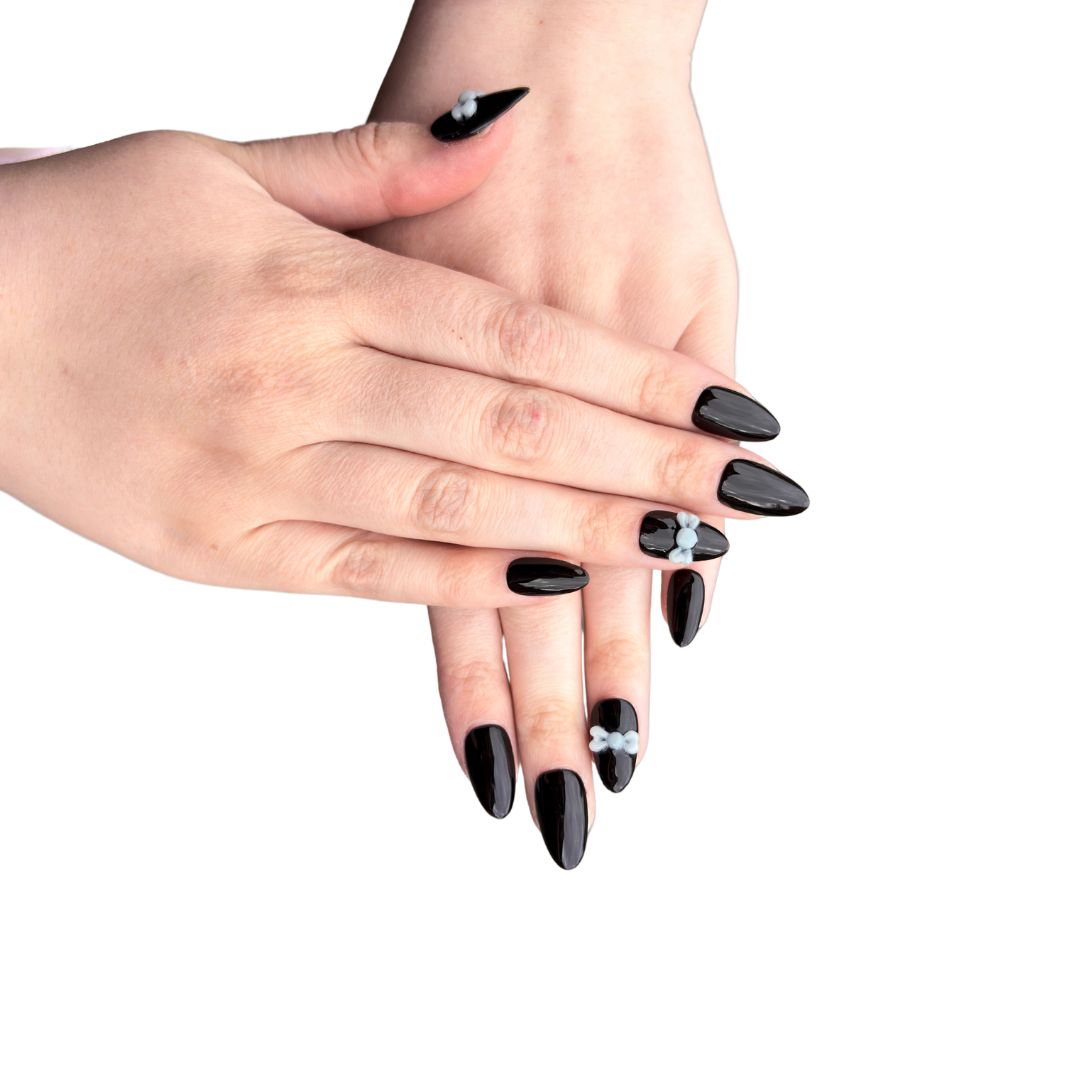 Transform your look with The Tuxedo Icon press on nails. Designed and inspired by our beautiful black and white 'tuxedo' cat, these nails will elevate any outfit to a new level of sophistication. No need for a salon visit - simply press on and make a statement.