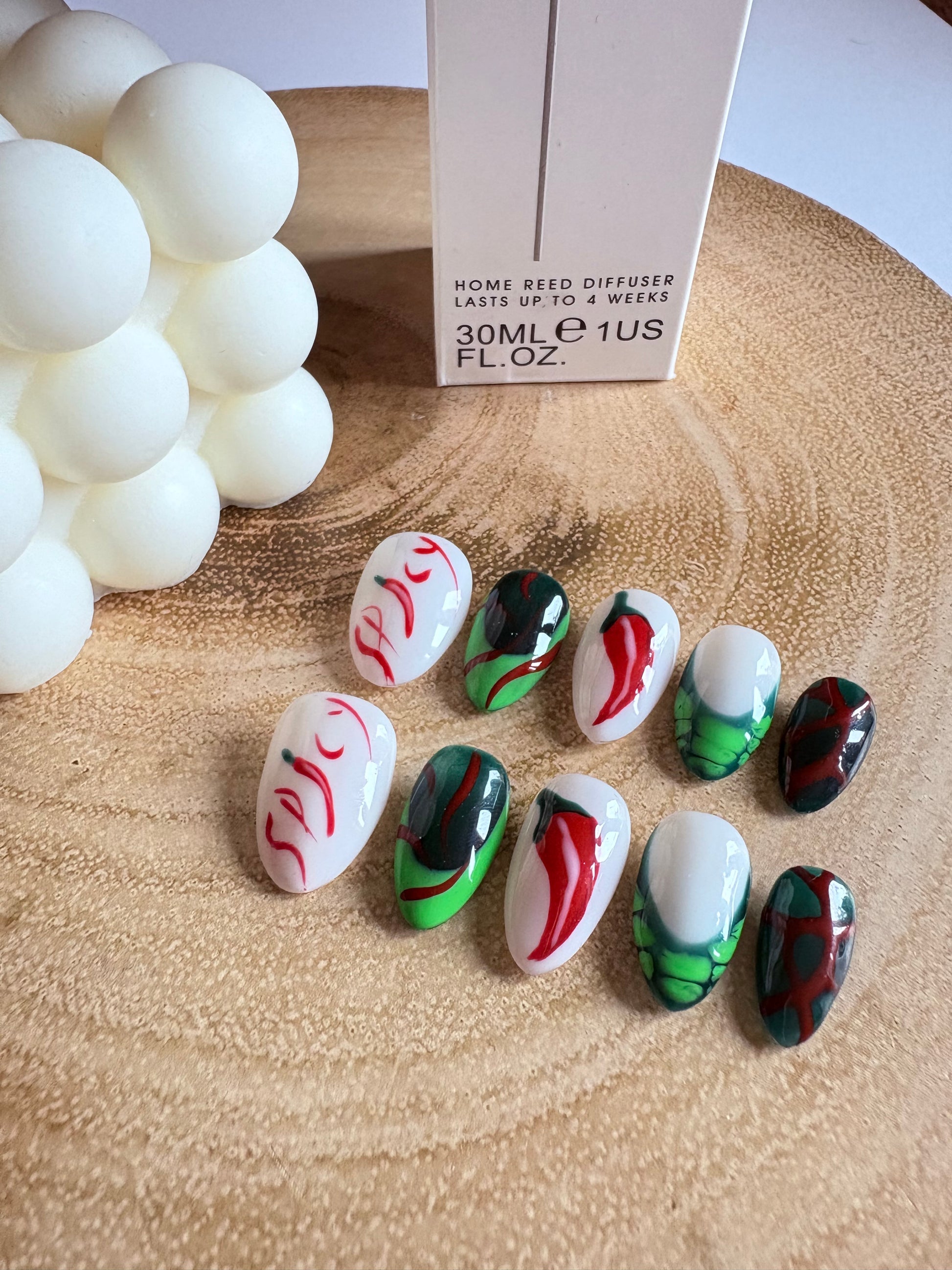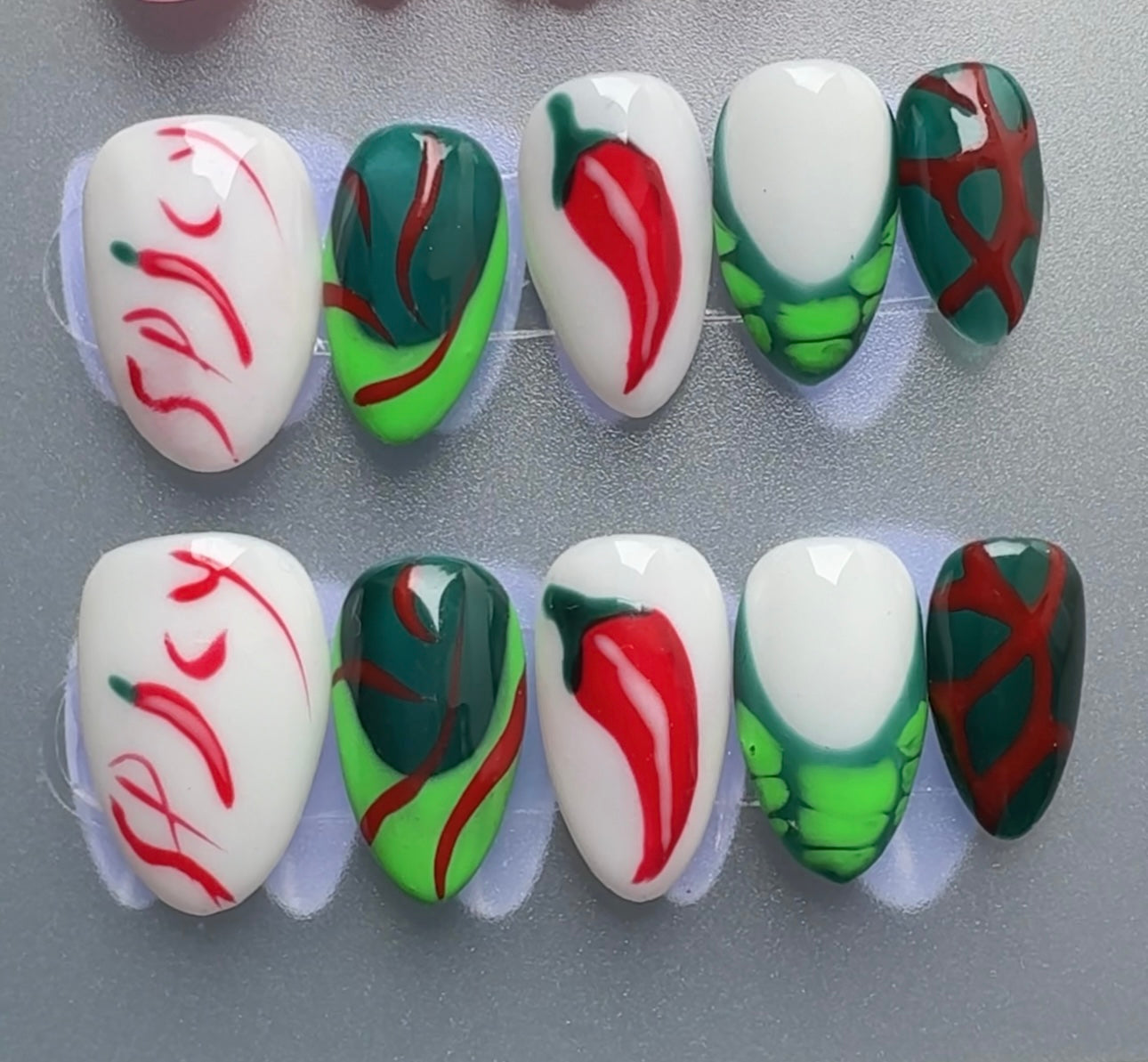 Too Spicy press on nails are perfect for adding a touch of boldness to your style. With their unique design and spicy colors, they are sure to make a statement. These high-quality press on nails are easy to apply and long-lasting for all your fiery looks.